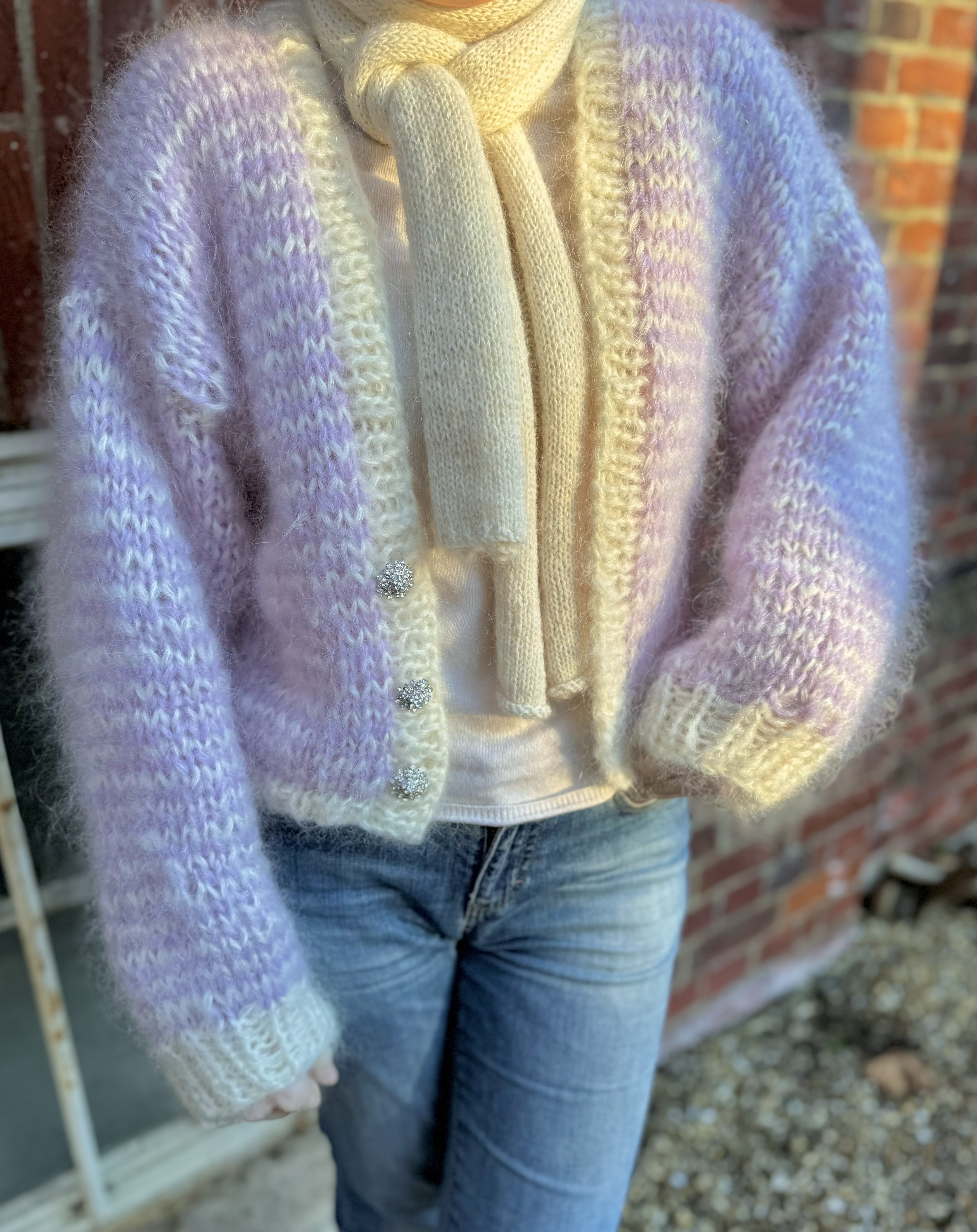 KokoCardi is a fluffy mohair project, friendly for beginners with 10mm needles 🌟 Available in Norwegian and English